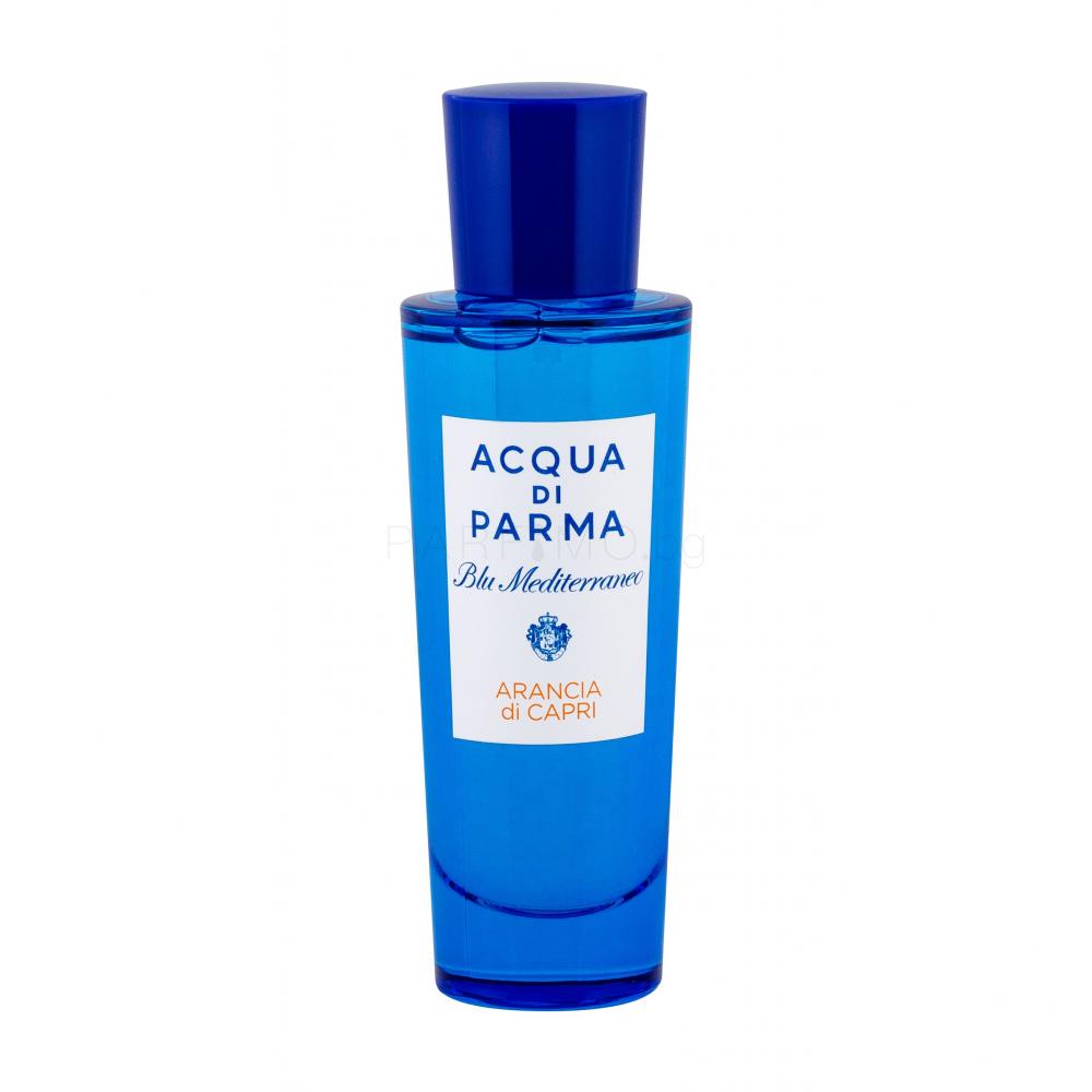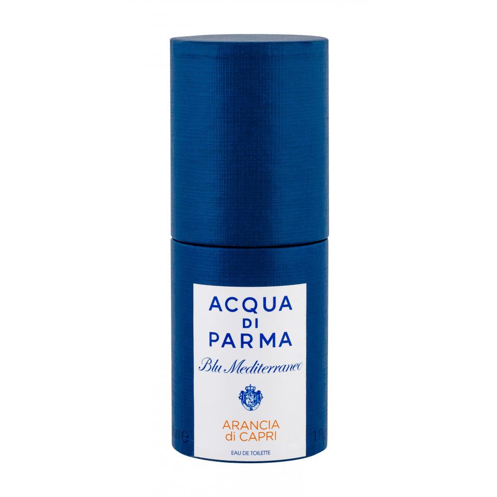 Acqua di Parma предлага различни колекции аромати. Една от тях е Blu Mediterraneo. Ароматите Niche са вдъхновени от пейзажа на средиземноморския регион на Италия и неговата красива атмосфера. Acqua di Parma Blu Mediterraneo Arancia di Capri е един от седемте аромата от тази средиземноморска група тоалетни води. Този релаксиращ, жизнен и ярък аромат вдъхва живот на комбинация от етерични масла от портокал, мандарина и лимон. Те се съчетават хармонично с кардамон. В основата ще забележите леко докосване на карамел и чувствени нотки на мускус.