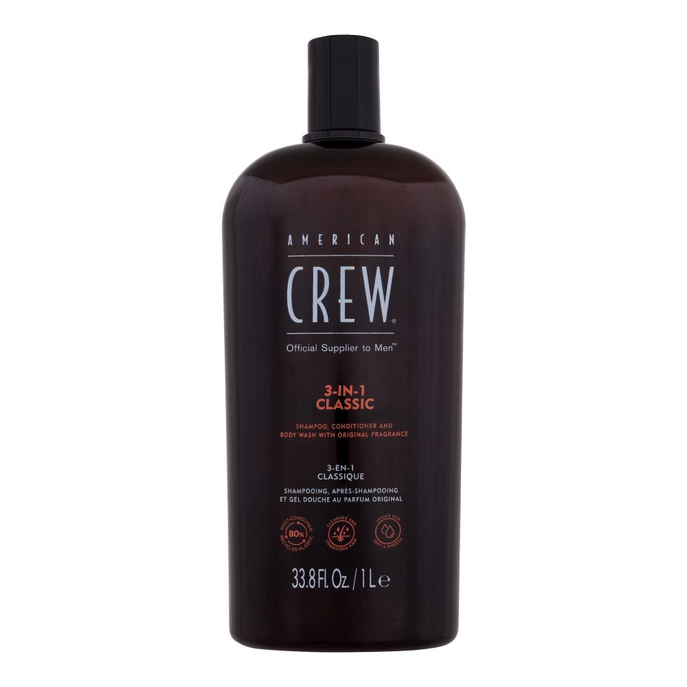 Подарете си уникално освежаващо изживяване. Шампоанът, балсамът и душ гел за тяло American Crew 3-IN-1 Shampoo, Conditioner & Body Wash перфектно почиства кожата и косата, като премахва всички замърсявания и излишната мазнина. След душ или вана ще се почувствате като преродени.