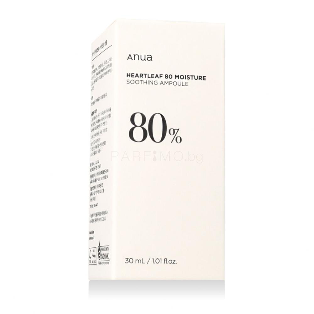 • Anua Heartleaf 80% Soothing Ampoule - Серум с висока концентрация на активен екстракт, който хидратира и намалява зачервяванията, без да утежнява кожата.