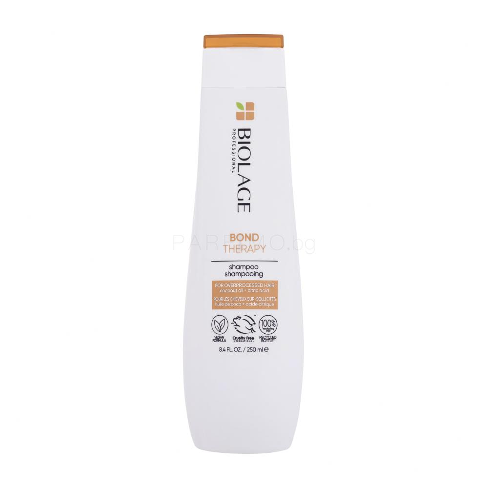 Шампоан Biolage Bond Therapy Shampoo е чудесен избор за вас, ако косата ви е увредена поради прекомерна употреба на химически продукти. Съставът му е обогатен с кокосово масло и лимонена киселина, които спомагат за възстановяването и укрепването на фибрите на косъма, като правят косата гладка и мека.