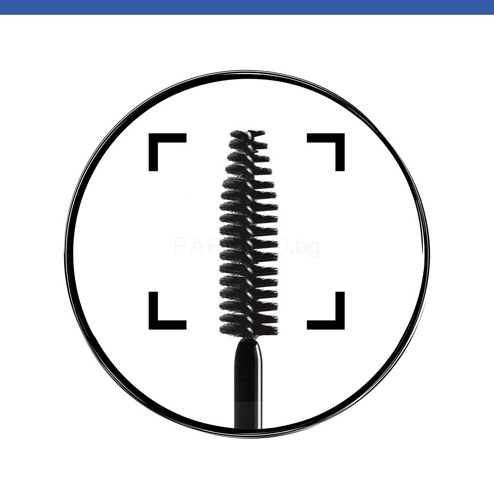 Нанесете с плавно движение от корените към върха на миглите, като нанасяте спиралата върху горните и долните мигли.