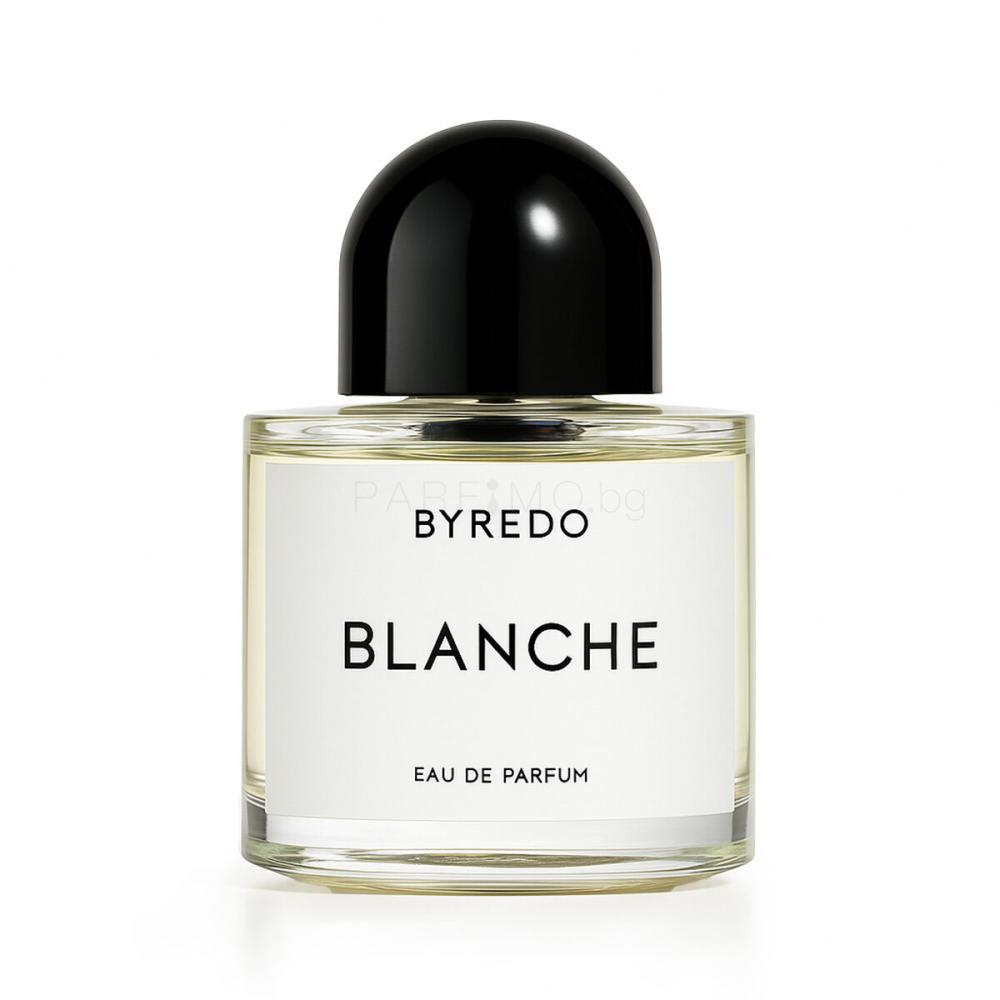 Невероятният дамски парфюм Byredo Blanche символизира красота, простота, нежност, чувственост и съблазнителност. Ароматът се открива с пикантни нотки на розов пипер, който плавно се омекотява от допира на изящна упойваща роза. Сърцето омагьосва с букет от нотки на жасмин, божур и портокалов цвят. Шлейфът е изтъкан от топли дървесни тонове, сандалово дърво и мускус. Впечатлете, подчертайте своя чар и истинската същност с неустоимия аромат на парфюм Blanche.