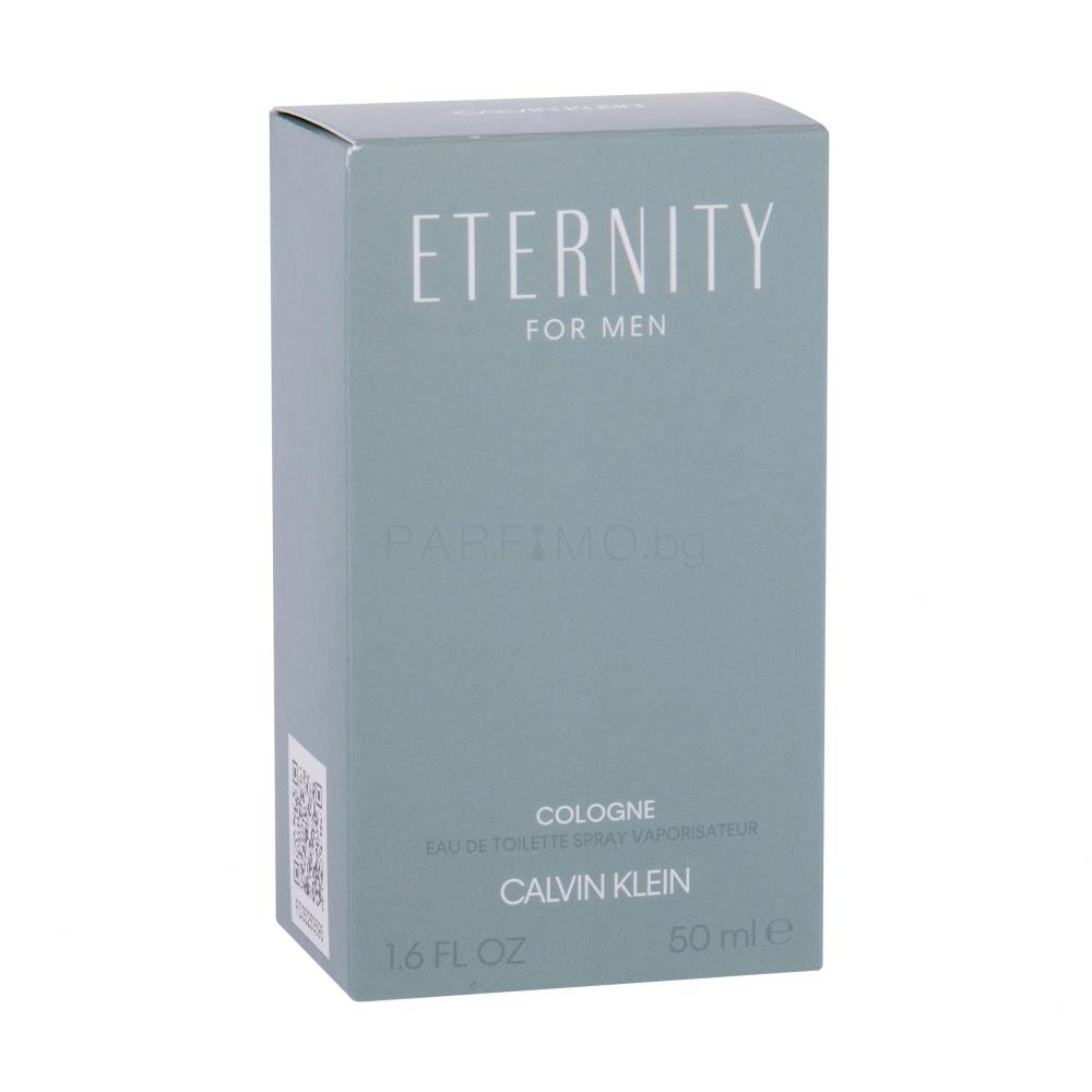 Calvin Klein Eternity Cologne е продължение на изключително популярната тоалетна вода Eternity, лансирана на пазара през 1989 г. Оригиналният Eternity е съставен на базата на лавандула, комбинирани с мандарина и свежа зелена нотка. Сърцевината е съставена от градински чай, жасмин, здравец и босилек. В основата има ароматни нотки на амбра, ветивер, сандалово дърво и палисандрово дърво. Версията одеколон е по-деликатна и може да се нанася в по-големи количества. Лек ежедневен аромат, Eternity Cologne на известната марка Calvin Klein е подходящ за по-топло време - пролет, лято и слънчеви есенни дни.