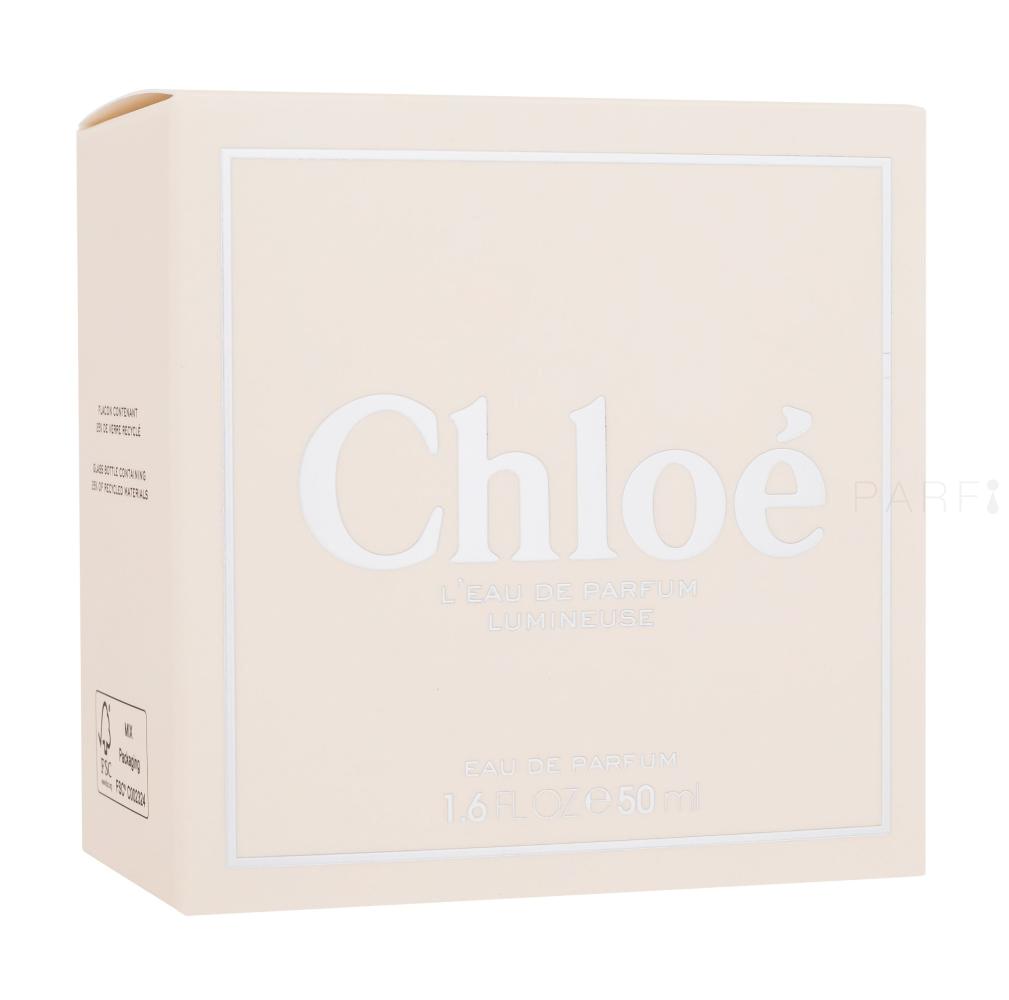 Флаконът на дамски парфюм Chloe L'Eau De Parfum Lumineuse напомня за винтидж красота. Той е увенчан с елегантна сребърна капачка. Парфюмът е украсен с луминисцентен бежов дизайн с фини сребърни детайли. А около гърлото на флакона ще намерите ръчно завързана бежова панделка с розови шевове - емблематичният моден подпис на Chloé. Използвайки рециклирани материали, производителят посочва, че красотата може да бъде свързана с планетата.