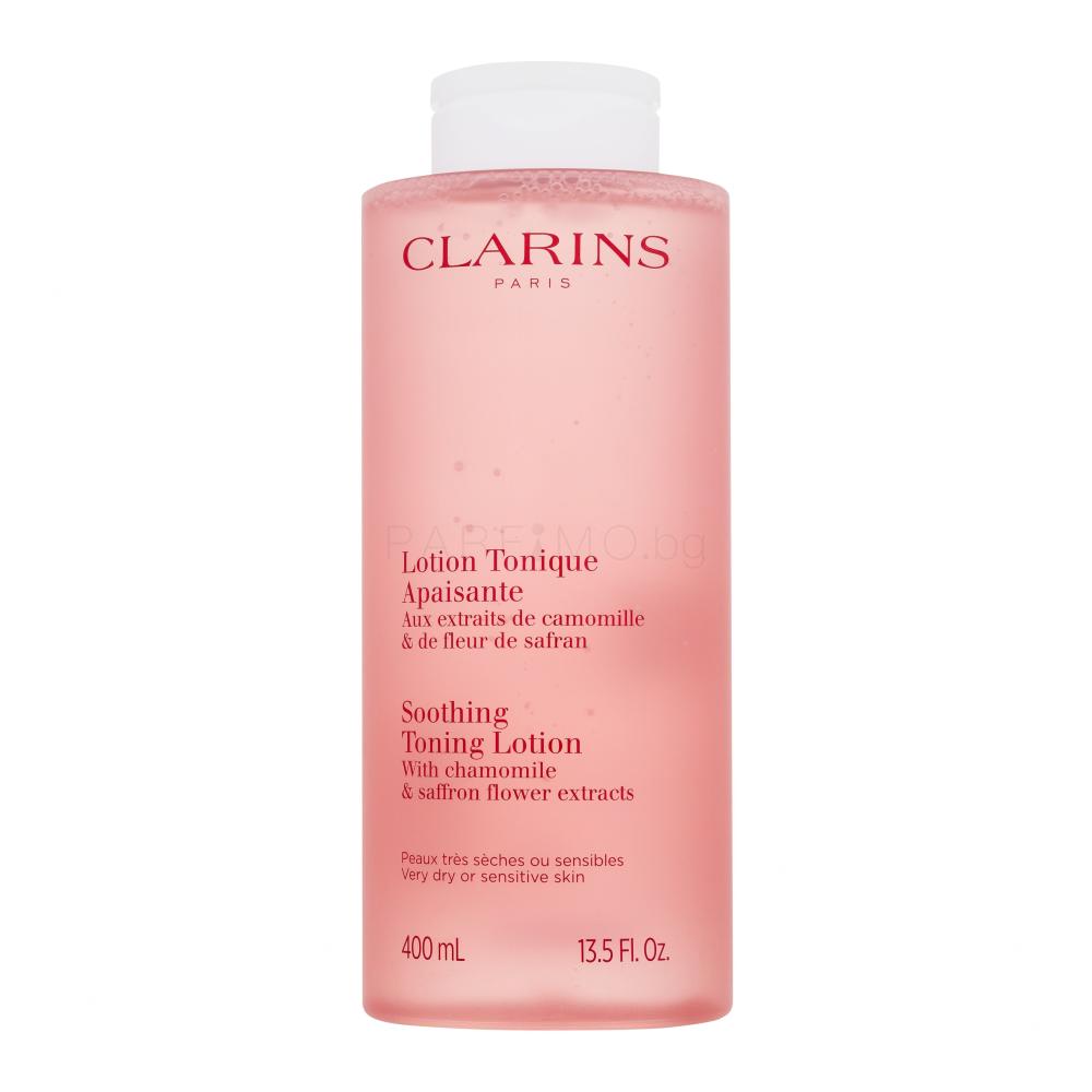 Успокояващият тонизиращ лосион за лице на Clarins Soothing Toning Lotion успокоява и тонизира кожата ви. Той освежава и премахва остатъците от грим. Подобрява еластичността на кожата и поддържа микрофлората ѝ в баланс.