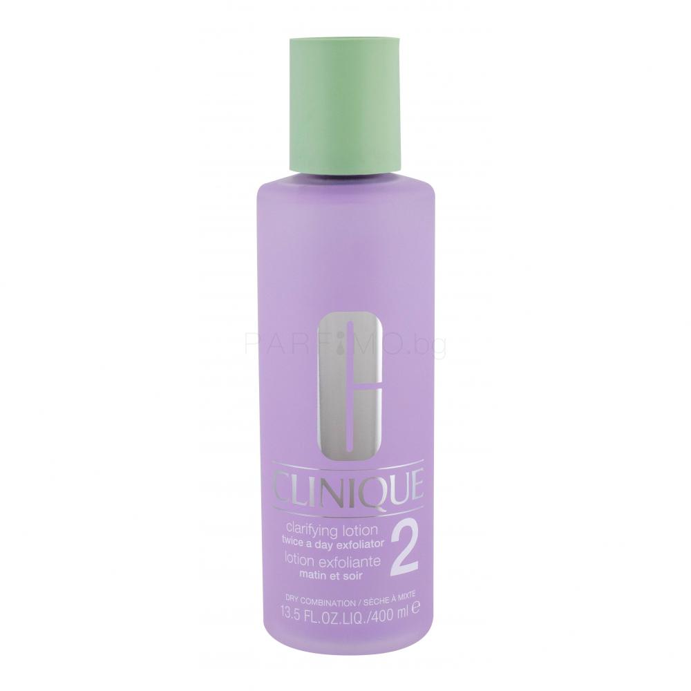 Почистването е втората стъпка в 3-стъпкова рутинна за грижа за кожата. Почистващата вода Clinique 3-Step Skin Care Clarifying Lotion 2 (2 = суха и смесена кожа) не само почиства, но има и нежен ексфолиращ ефект, благодарение на който кожата Ви ще бъде приятно озарена.