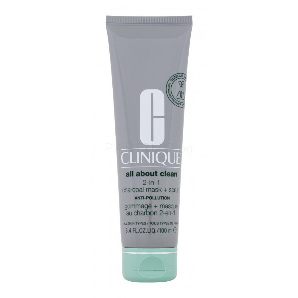 Само за пет минути детоксикираща маска и скраб Clinique All About Clean 2-in-1 Charcoal Mask + Scrub ще премахнат примесите, свободните радикали и излишния себум.