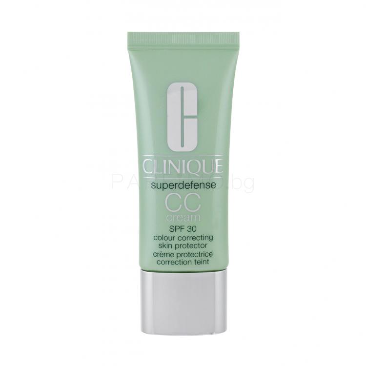Тониращият крем за лице Clinique Superdefense CC Cream SPF30 изравнява тена, усъвършенства, хидратира и подхранва кожата. Бори се със свободните радикали и предпазва кожата от всички външни агресори, които причиняват стареенето ѝ.