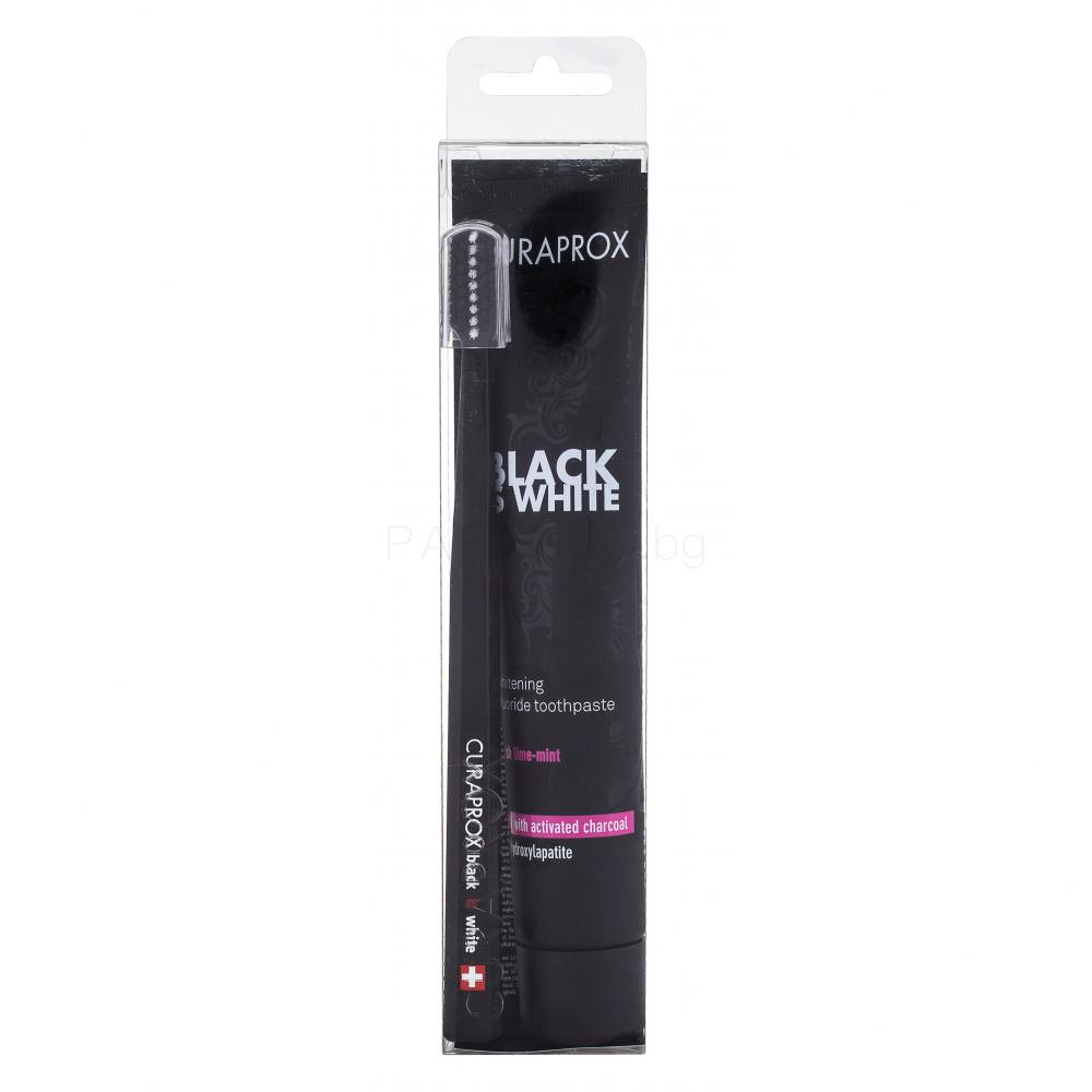 Нежната и ефективна избелваща паста Curaprox Black Is White, използва активен въглен без абразиви и избелващи агенти за премахване на обезцветяването на зъбите.