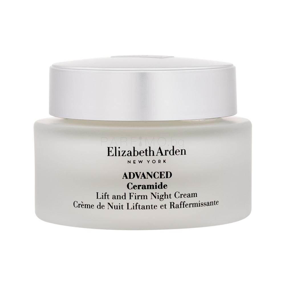 Нощния крем за лице Elizabeth Arden Ceramide Advanced Lift And Firm Night Cream възстановява и регенерира кожата през нощта и има интензивен ефект против стареене. Осигурява на кожата дълготрайна и оптимална хидратация. Кремът с керамиден комплекс и технология изглажда бръчките и възстановява защитната бариера на кожата. Подарете си дълбока грижа и защита.