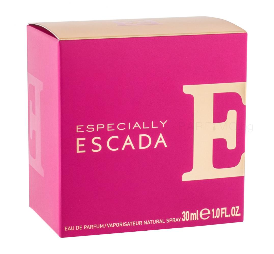 Парфюм Especially Escada е луксозна композиция, която ще се хареса на дамите, които само искат да подчертаят своя чар. Опияняващи розови акорди акцентират в кадифено топлото съчетание, с което можете да се насладите на всеки един момент, независимо от повода. Тази луксозна ода на радостта е увенчана с необичайно златисто-розов флакон.