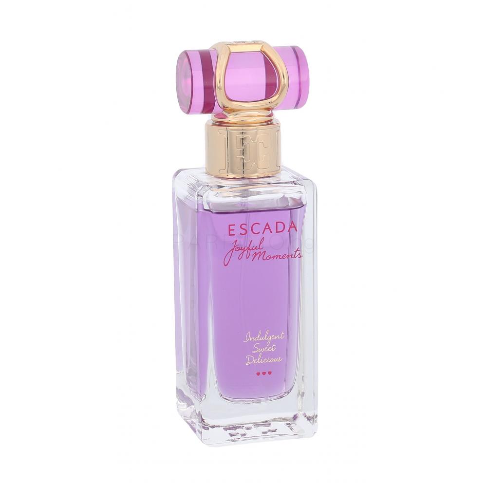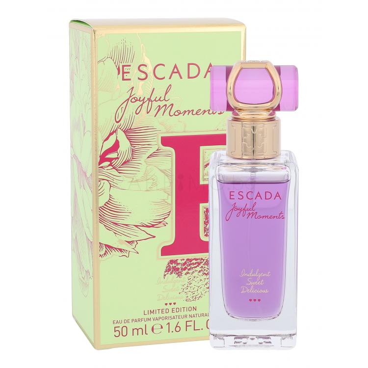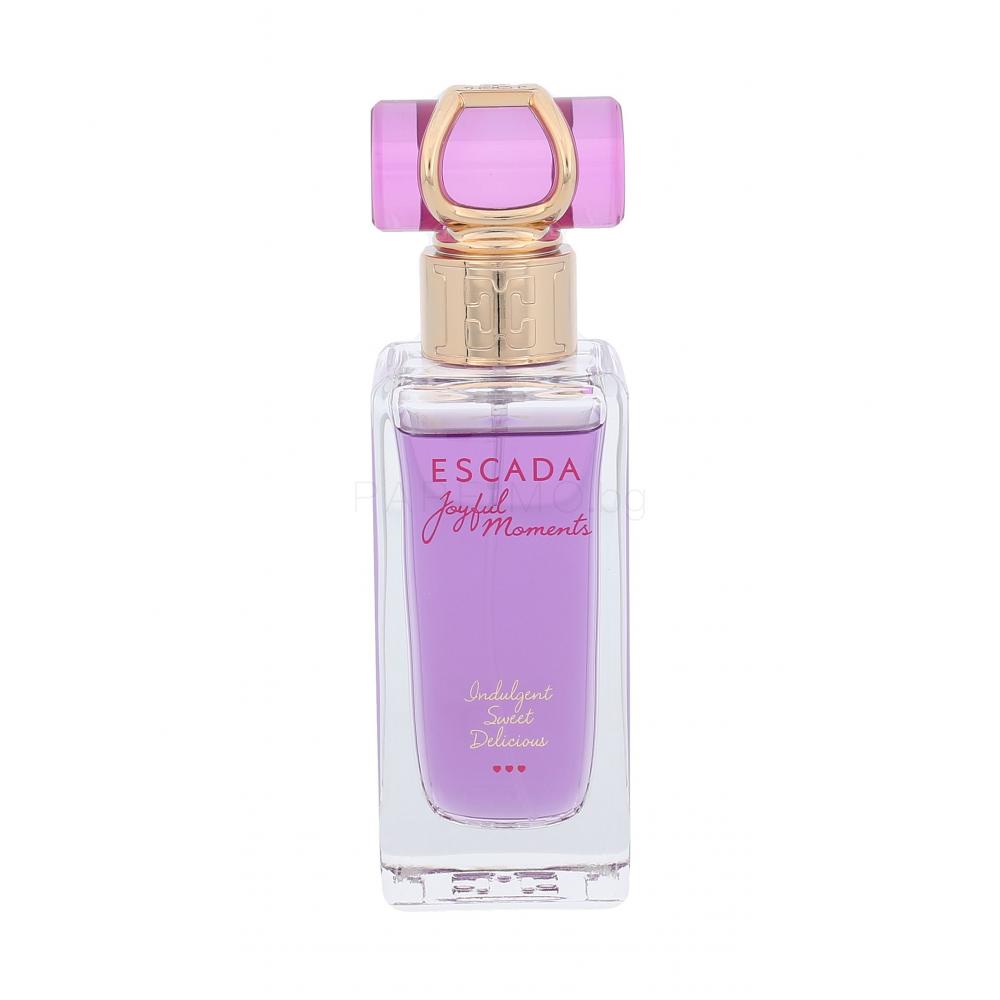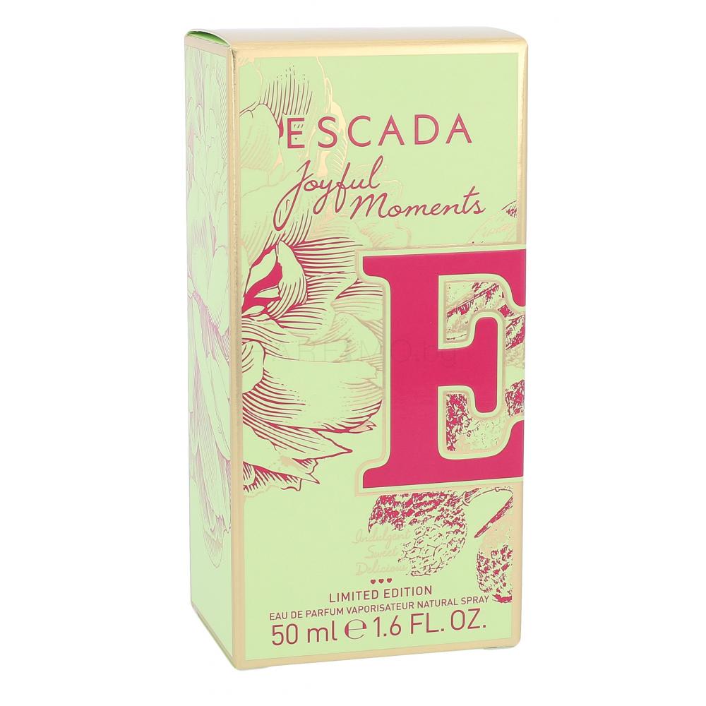 Парфюм Escada Joyful Moments е радостен и оптимистичен аромат за жени от 2015 година. Уханието предлага съчетание на сочни портокали, касис и екзотично личи. Сърцето е препълнено с флорални нотки на божур и рози, които бавно прегръщат листенца от виолетки. Съставът завършва със сладко ухание на мед и ванилия. Дамският парфюм Joyful Moments ще предизвика усмивка на устните Ви. Насладете се на обикновените, малки неща във всеки момент на деня, възможно най- пълно. Лице на рекламна кампания на парфюма е актрисата Miranda Kerr.