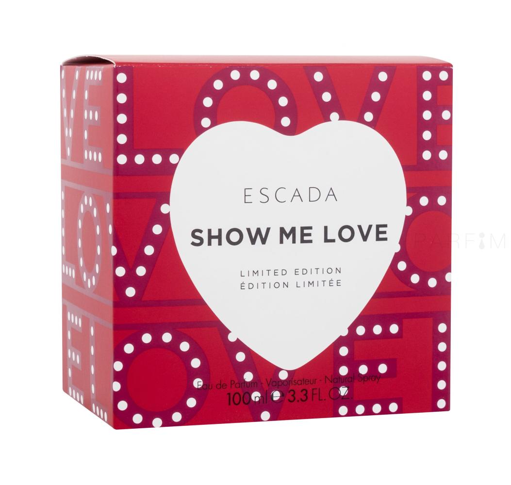 Парфюм Show Me Love следва тоалетна вода Candy Love от 2020 г. и тоалетна вода Fairy Love от 2021 г. Търсената немска марка ESCADA пуска на пазара привлекателни, цветни дрехи, чанти и парфюми, които са лесно разпознаваеми. Сега можете да поставите третото очарователно „сърце“ на ESCADA на вашата тоалетна масичка – парфюм Show Me Love. В сравнение с тоалетната вода, той е по-интензивен и усещането ви за аромата ще бъде по-дълготрайно. Не се колебайте, ESCADA Show Me Love е истинска звезда, с кутия, отпечатана с думата „любов“ в стила на емблематичния надпис на Бродуей и флакон, напомнящ червеното кадифе на театралните завеси. Винаги и навсякъде ще блестите с него.