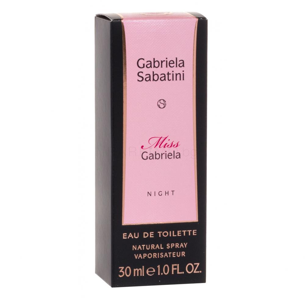 Завладяващото ухание на тоалетната вода Gabriela Sabatini Miss Gabriela Night ще Ви очарова мигновено. Богатата композиция на аромата Miss Gabriela Night съчетава плодови и флорални нотки. Завършекът от сандалово дърво и сладък кокос придават стил и нежност. Тоалетната вода Gabriela Sabatini Miss Gabriela Night е представена през 2014 г.