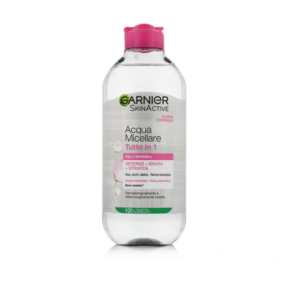 Цялостното премахване на грима и почистването на лицето е в основата на ефективната козметична и антиейдж грижа. Мицеларна вода Garnier SkinActive Micellar ще улесни този не много привлекателен, но необходим ежедневен ритуал. Това е непарфюмиран продукт за почисване на грим. Само трябва да капнете няколко капки върху козметичен тампон, за да почистите кожата си без последващо изплакване. Мицелите, съдържащи се в Garnier SkinActive Micellar, действат като магнити върху замърсяванията и ги издърпват дълбоко от порите, без да се налага да търкате кожата. Следователно мицеларната вода също отговаря на изискванията на чувствителната кожа.