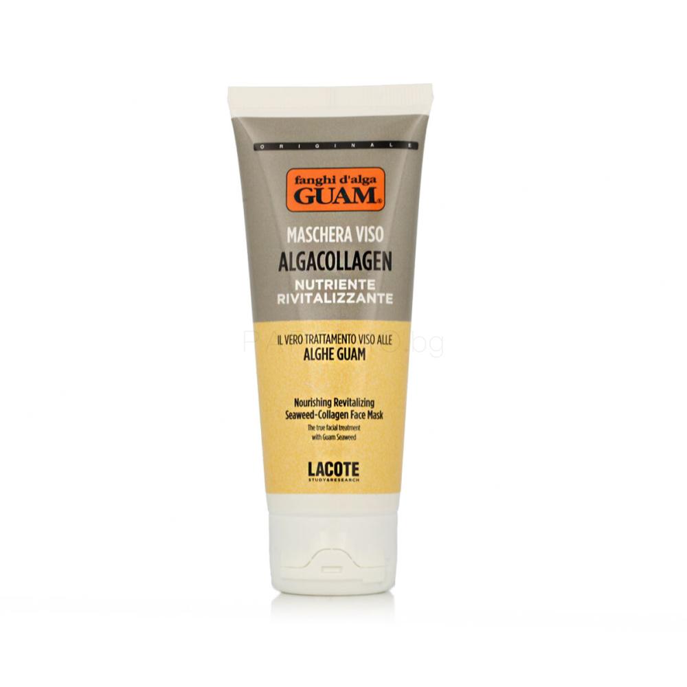 GUAM Algacollagen Nourishing Revitalizing Face Mask е силно подхранваща и ревитализираща маска за лице, предназначена да възстанови жизнеността и еластичността на кожата. Благодарение на уникалната комбинация от морски водорасли, черна глина и биофактори за растеж GUAM ефективно стимулира регенеративните процеси на кожата, като я подхранва в дълбочина и спомага за намаляване на признаците на умора.