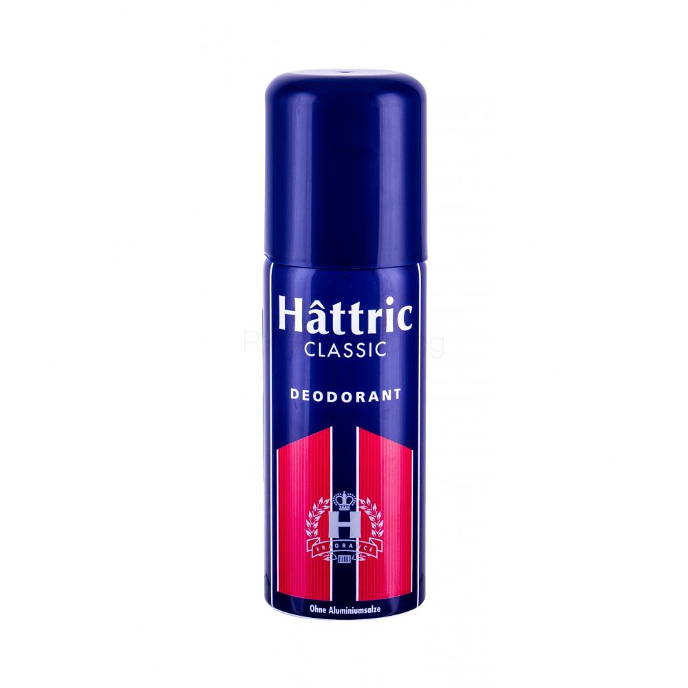 Hattric не само се свързва с хубави парфюми, но предлага и козметика за мъже. Дезодорант Hattric Classic се предлага в комплект с одеколон Hattric.