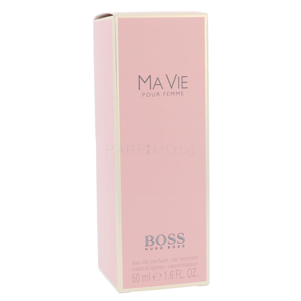 Парфюм Boss Ma Vie е лансиран от марка Hugo Boss на световните пазари през лятото на 2014 г., част от линията Boss Nuit от 2012 г., Boss Jour от 2013 г. и Boss Nuit Intense от 2014 г. Освен това има същия дизайн на флакона като предшественика си, но този път създателите избират фин нюанс на розово. Рекламно лице на дамски парфюм Boss Ma Vie Pour Femme на HUGO BOSS е популярна актриса и певица Гуинет Полтроу.