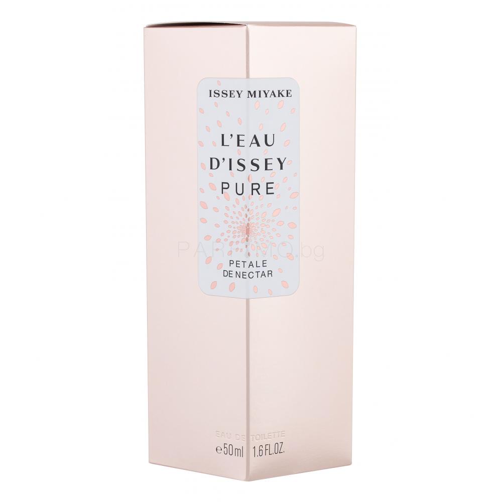 Тоалетна вода Issey Miyake L'Eau D'Issey Pure Petale de Nectar напомня за капка животворна вода, без която няма живот. Тя е вдъхновена от легендарния дамски парфюм Issey Miyake L'Eau D'Issey, съчетаващ силата на водопад, флорални нотки и пролетна гора. Issey Miyake не признава интензивността на традиционните парфюми и когато е попитан от създателите как би си представил аромата, носещ неговото име, той отговаря: "Като вода, нещо, което дори не усещаш... " И той основава парфюмните си творения на тази философия, която е представена от композицията L'Eau D'Issey Pure Petale de Nectar ** за 2019 г.