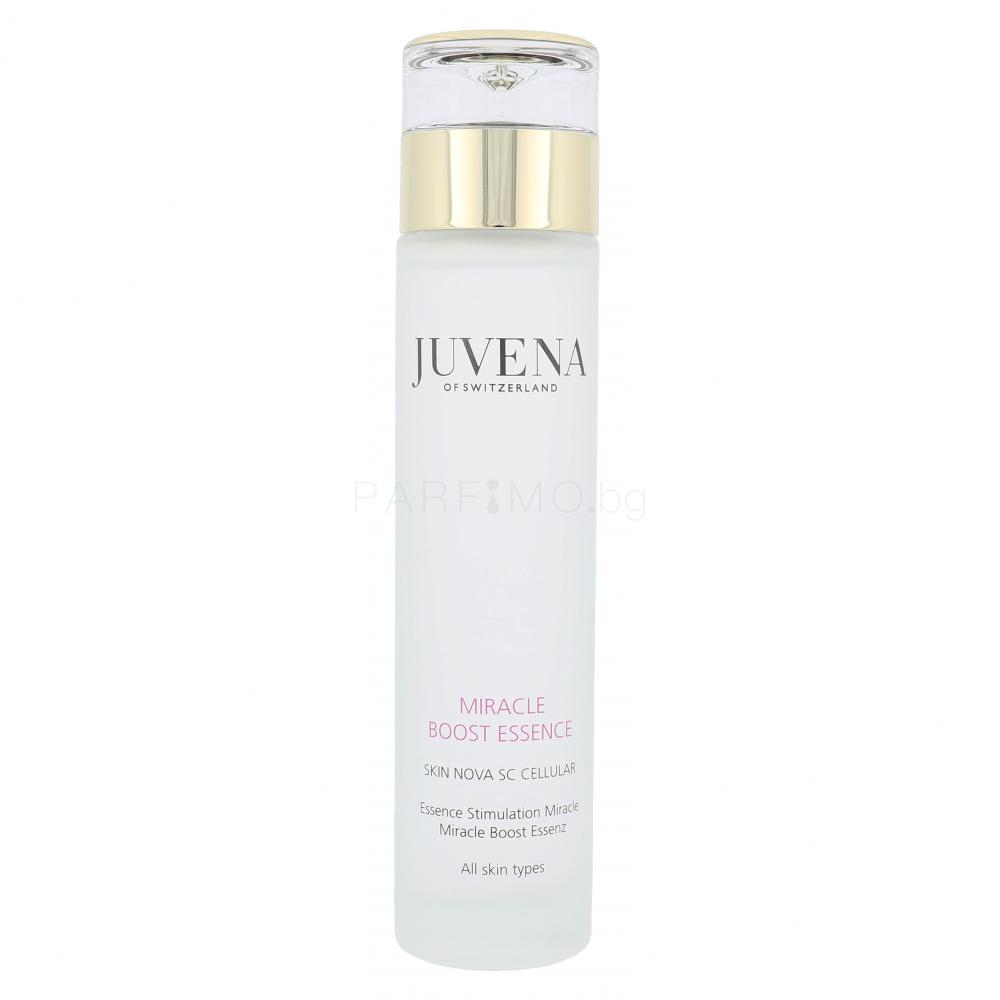 Juvena Miracle Boost Essence Skin Nova SC Cellular е луксозна подмладяваща есенция за лице, създадена за интензивно обновяване и подготовка на кожата за последваща грижа. Формулата с патентованата технология SkinNova SC Cellular активира естествената регенерация на клетките и подобрява усвояването на активните съставки от серуми и кремове. Леката текстура се абсорбира моментално, без мазен филм, и придава на кожата мекота, еластичност и сияен вид още след първото нанасяне. Подходяща е за всеки тип кожа, включително чувствителна, и е отлична първа стъпка в ежедневната анти-ейдж рутина.