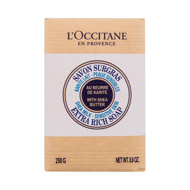 Нанесете малко количество от сапун L'Occitane Shea Milk Extra Rich Soap върху влажни ръце и разпенете. Изплакнете.