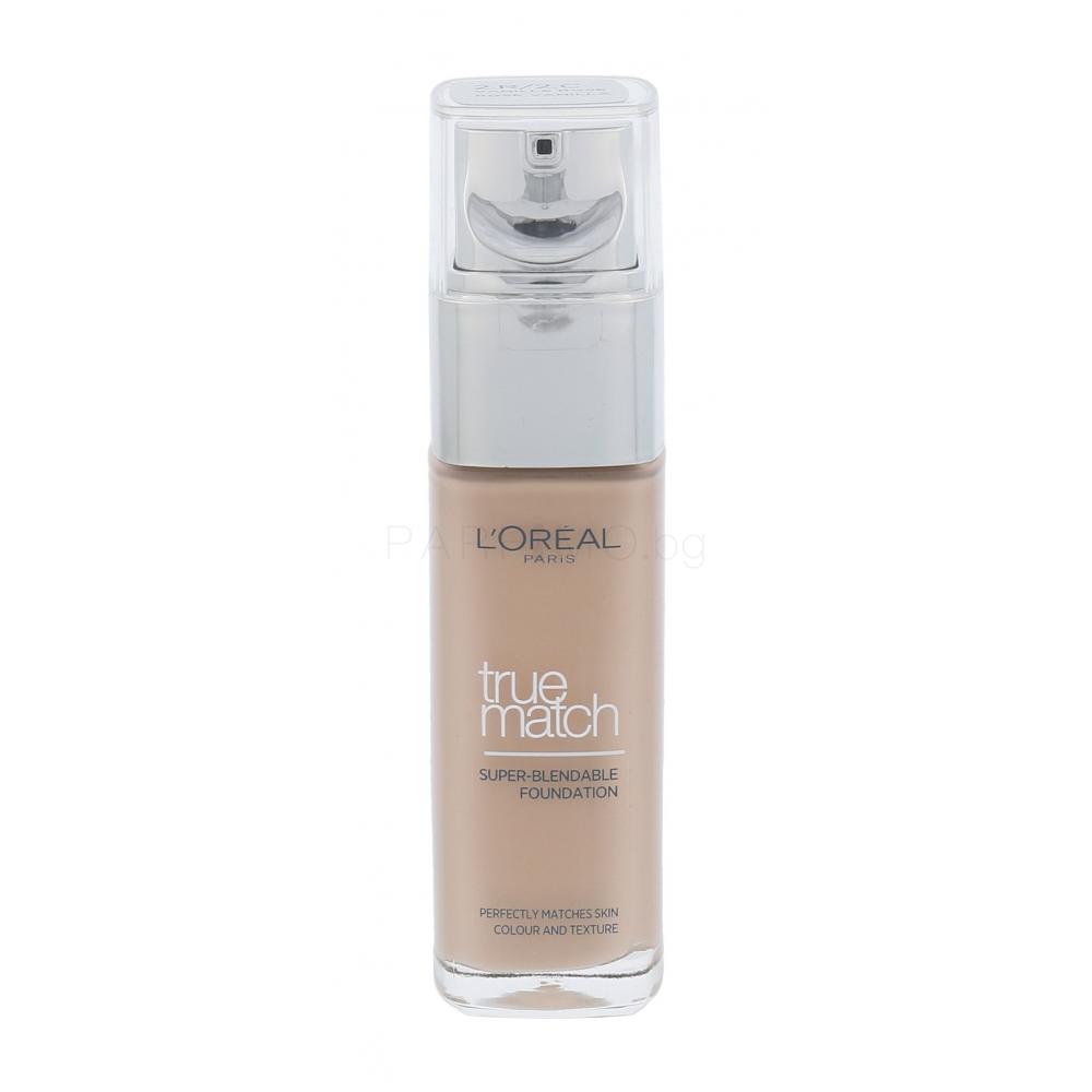 Фон дьо тен L'Oréal Paris True Match е деликатен козметичен продукт, който ще се слее перфектно с цвета на кожата ви. Прикрива несъвършенствата естествено и незабележимо. Уеднаквяващият и изравняващ цвета на кожата фон дьо тен True Match на световноизвестната козметична марка L'Oréal Paris ще прикрие незабележимо несъвършенствата по кожата. Течният фон дьо тен обещава 24-часова хидратация, а уникалната му формула изглажда и омекотява кожата. Този страхотен козметичен продукт изглежда напълно естествено върху кожата, не създава нежелан ефект на маска и е дерматологично тестван. Фон дьо тенът е подходящ за всички типове кожа. Съдържанието на ценни масла, заедно с фината и лека текстура допринасят за равномерното му нанасяне.