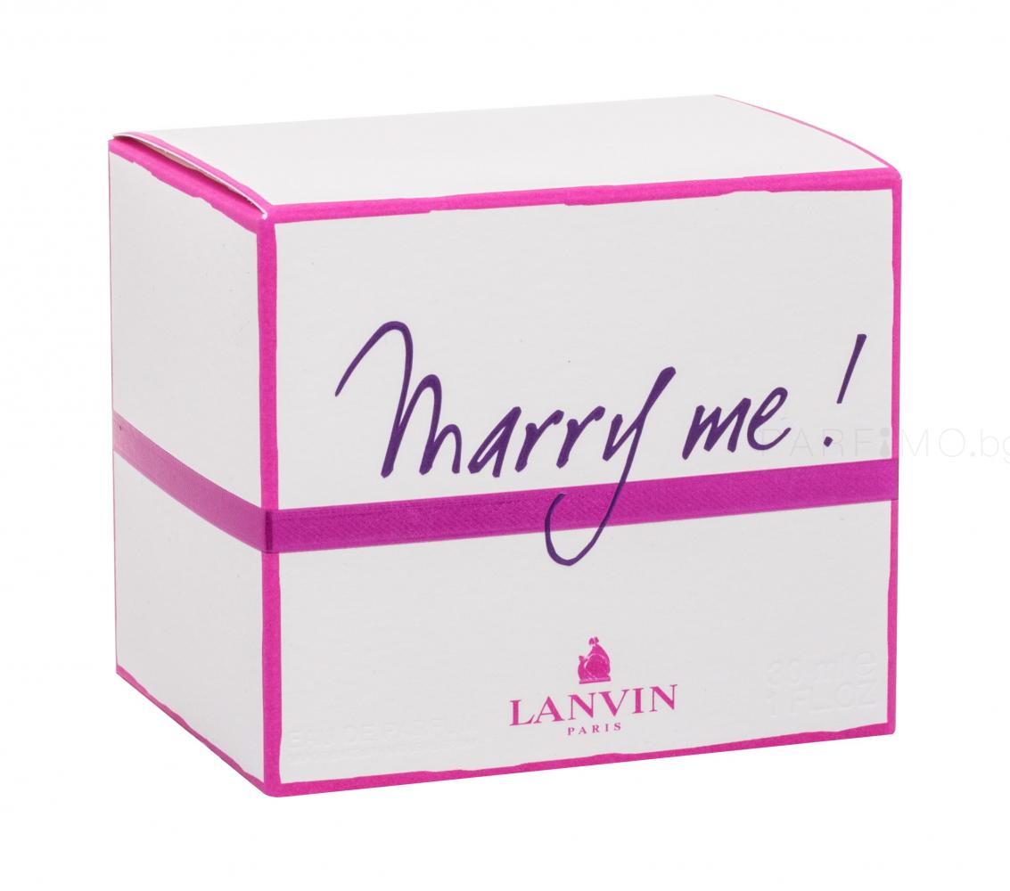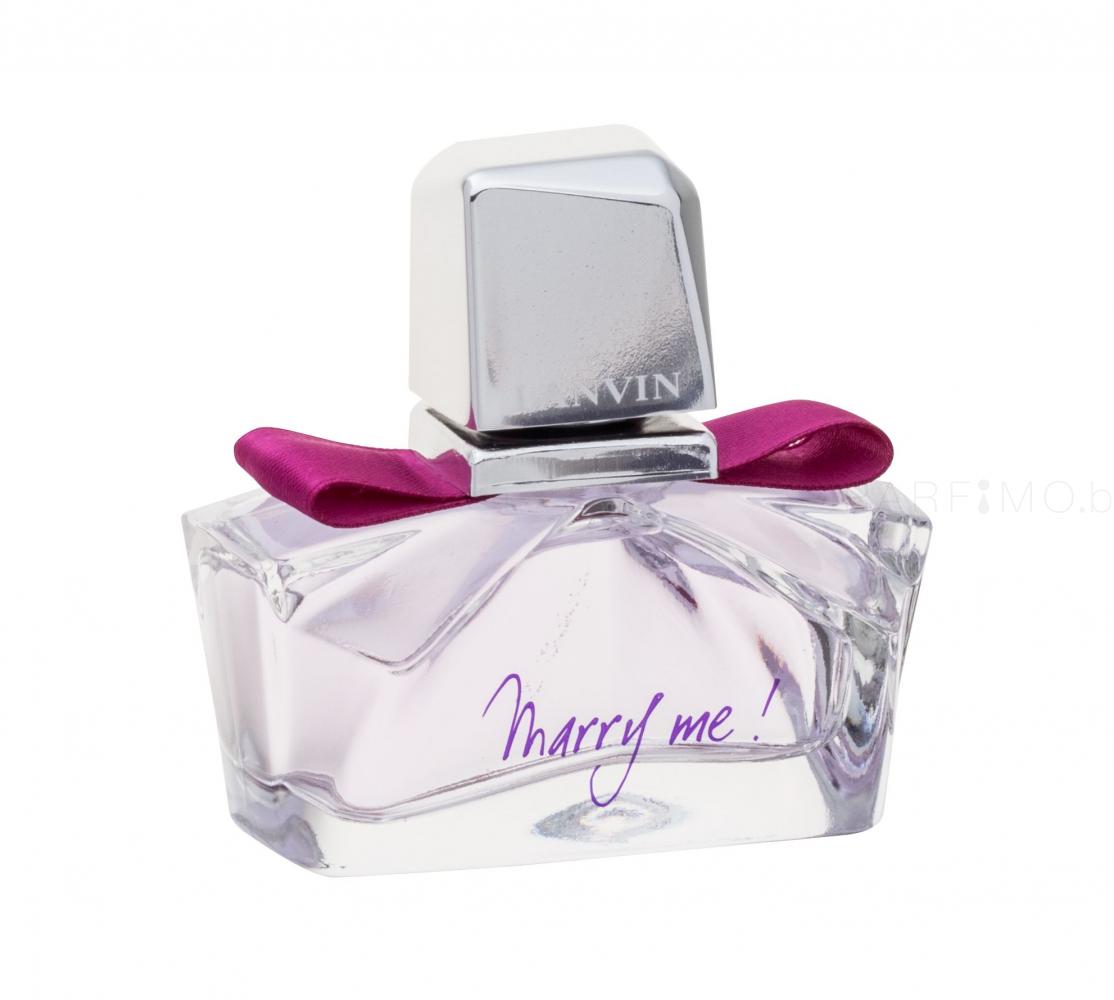 Начални нотки от фрезия, загадъчното ухание на жасмин и освежаващия портокал ще ви спечелят веднага. Постепенно началните нотки са заменени от уханието на магнолия, деликатна роза, жасмин и акордите на зряла, прясно откъсната праскова. Накрая топлите нотки на кедър, кехлибар и мускус подчертават вашата женственост и чувственост. Този изключителен аромат, изпълнен с любов, е представен през 2010 г. Влюбете се в Lanvin Marry Me!