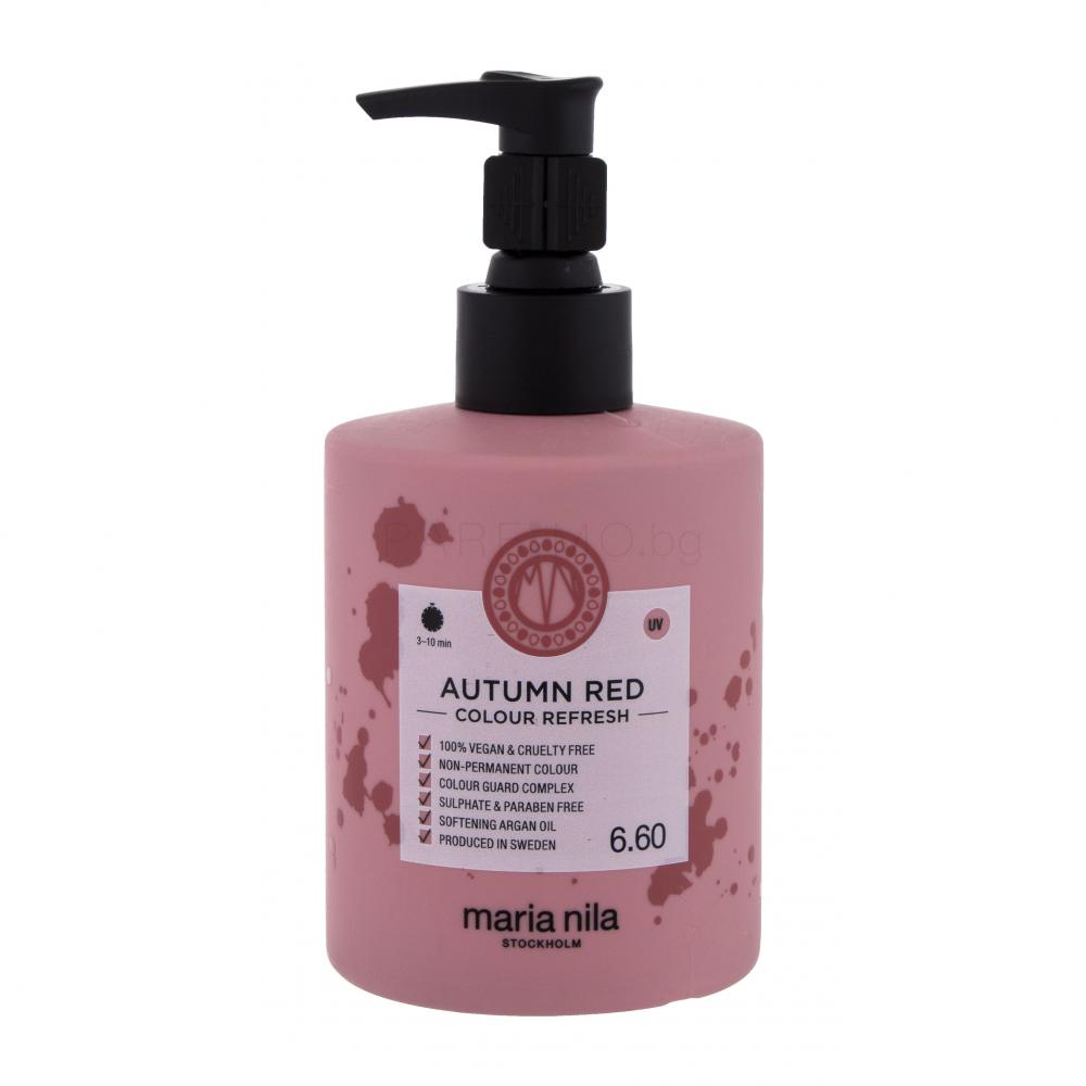 Възстановете цвета на косата си с маската за коса Maria Nila Colour Refresh. Тя е подхранваща и подсилваща цвета маска, която оставя леки червени тонове. Предпазва косата от неблагоприятното въздействие на слънчевите лъчи и свободните радикали. Съдържа омекотяващо арганово масло, което се грижи за косата ви и я омекотява за мек и здрав вид.