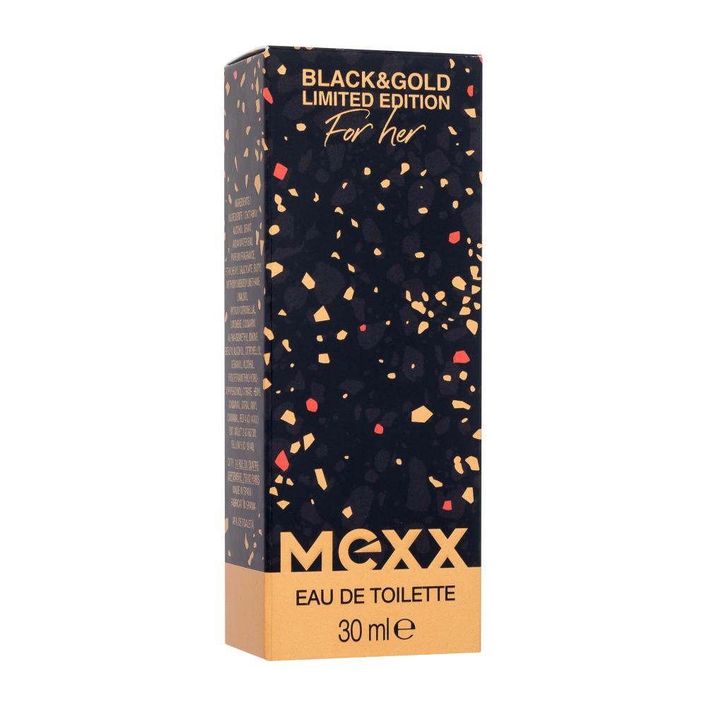 Тоалетна вода за мъже Mexx Black & Gold Limited Edition също празнува живота и помага да запомните специалните моменти. В първите минути се забелязват освежаваща мента, юзу и горчив портокал, след това лавандула, градински чай и известната американска напитка B52 , в последните акорди ще се впечатлите от дървесни нотки на пачули, ветивер и операнид. И двете тоалетни води Mexx Black & Gold Limited Edition печелят точки с ексклузивния си дизайн и особено с прекрасната си, чувствена ароматна композиция.