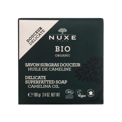 Органичният твърд сапун NUXE Bio Organic Delicate Superfatted Soap Camelina Oil нежно и ефективно премахва мръсотията, замърсяванията и следите от грим от кожата на тялото и лицето, оставяйки след себе си неустоим аромат на портокалов цвят.