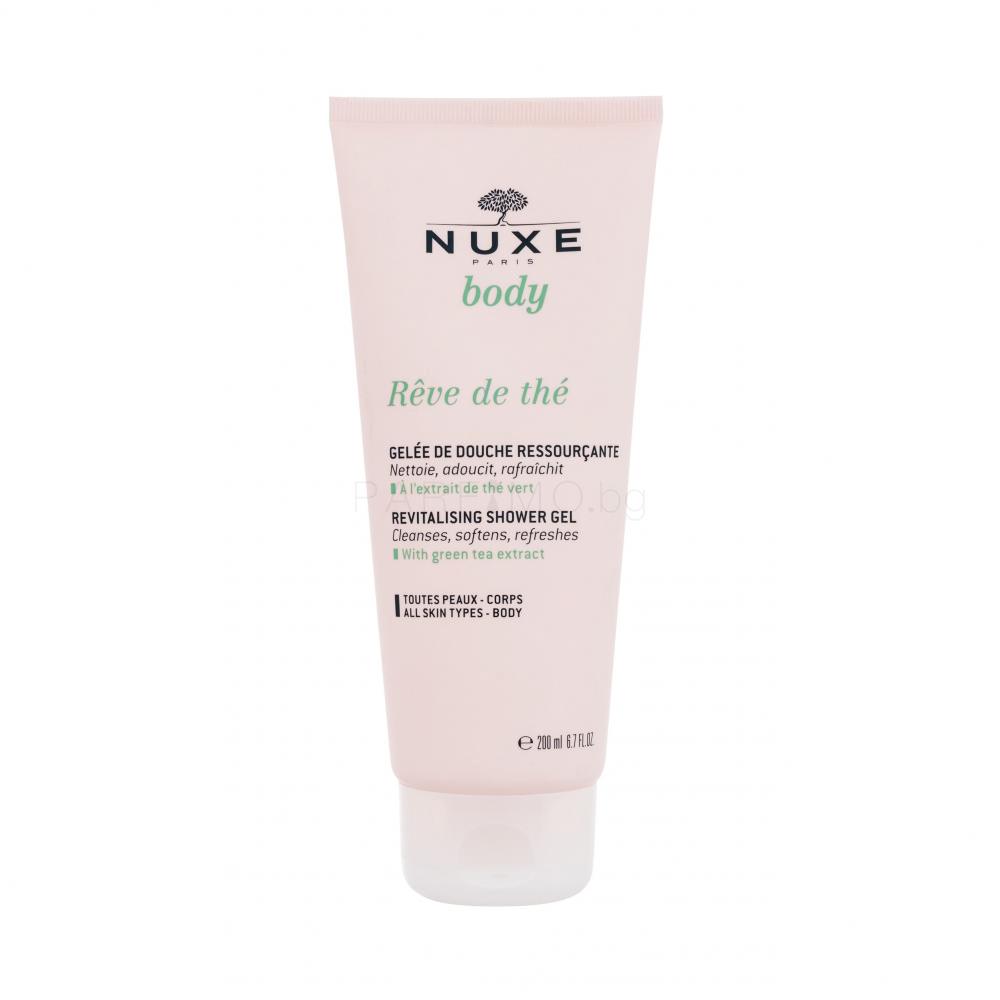 Обгърнете кожата си в ревитализиращи нотки на зелен чай, ревен и пресни билки с душ гел NUXE Reve de Thé Revitalizing Shower Gel.