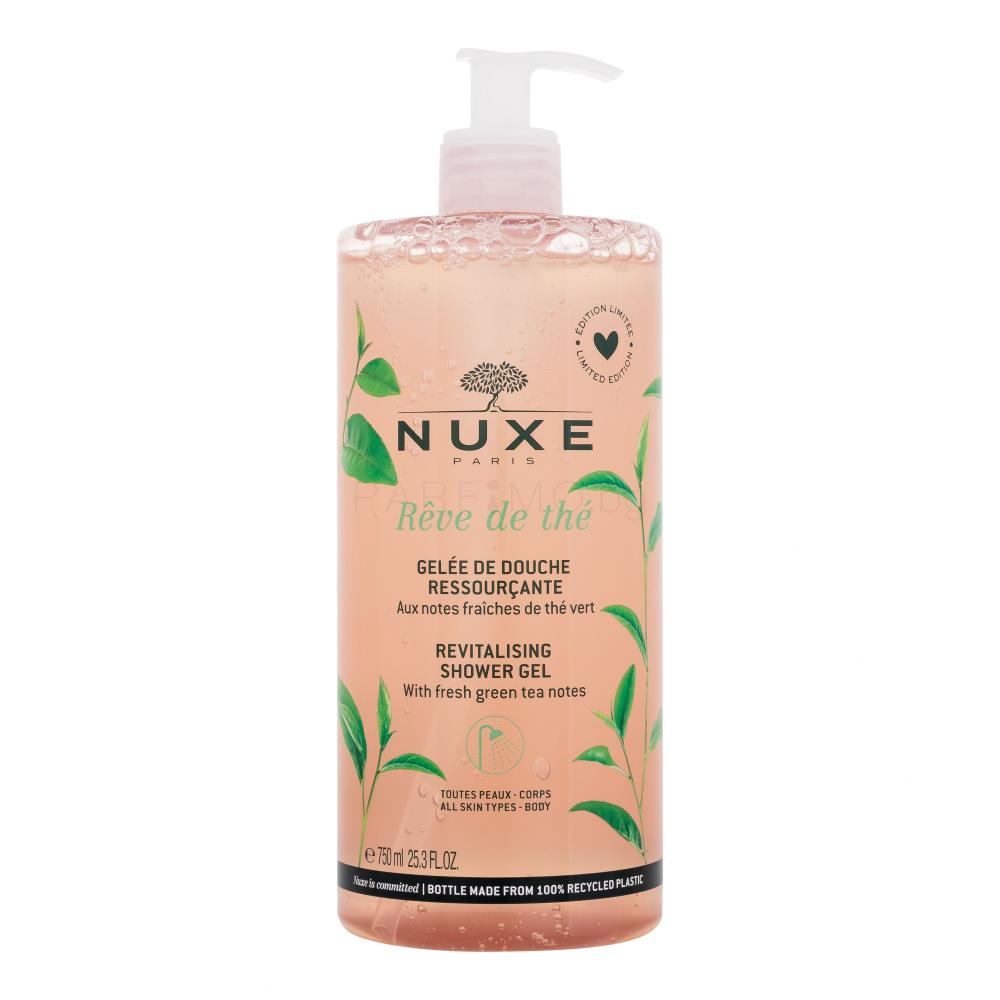 Обгърнете кожата си в ревитализиращи нотки на зелен чай, ревен и пресни билки с душ гел NUXE Reve de Thé Revitalizing Shower Gel.