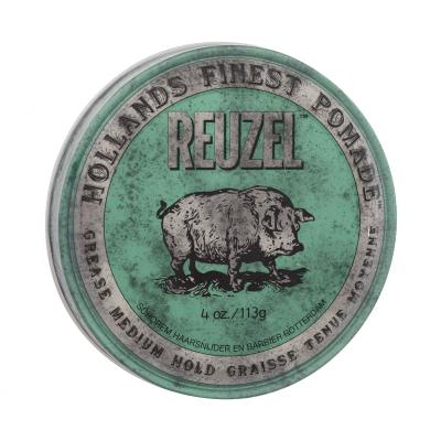 Reuzel Hollands Finest Pomade Grease Medium Hold е на базата на восък и масло, като придава на прическата ви средна фиксация и блясък.