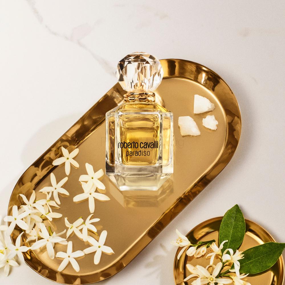 Самият Роберто Кавали каза за аромата: „Paradiso е за моменти, изпълнени с щастие. С този аромат исках да изразя момента, в който се чувствате напълно спокойни и свободни.” Флорално-дървесният аромат е скрит в уникален флакон, който сам по себе си е бижу, намерил вдъхновение от красотата на диамантите. Отидете на безгрижна лятна ваканция с дамски парфюм Roberto Cavalli Paradiso, почувствайте се уверени, привлекателни и спокойни.