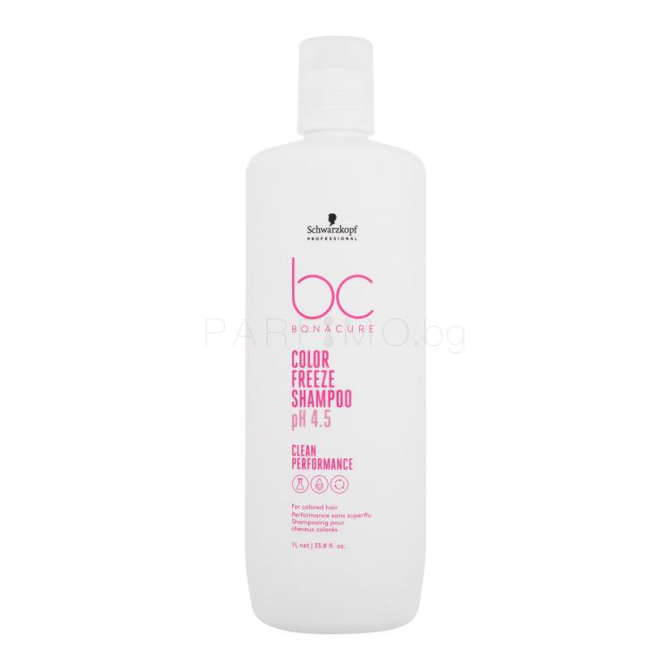Шампоанът Schwarzkopf Professional BC Bonacure Color Freeze pH 4.5 Shampoo подхранва боядисаната коса без да я стресира, предпазва цвета от отмиване, избледняване и е подходящ за редовна употреба.