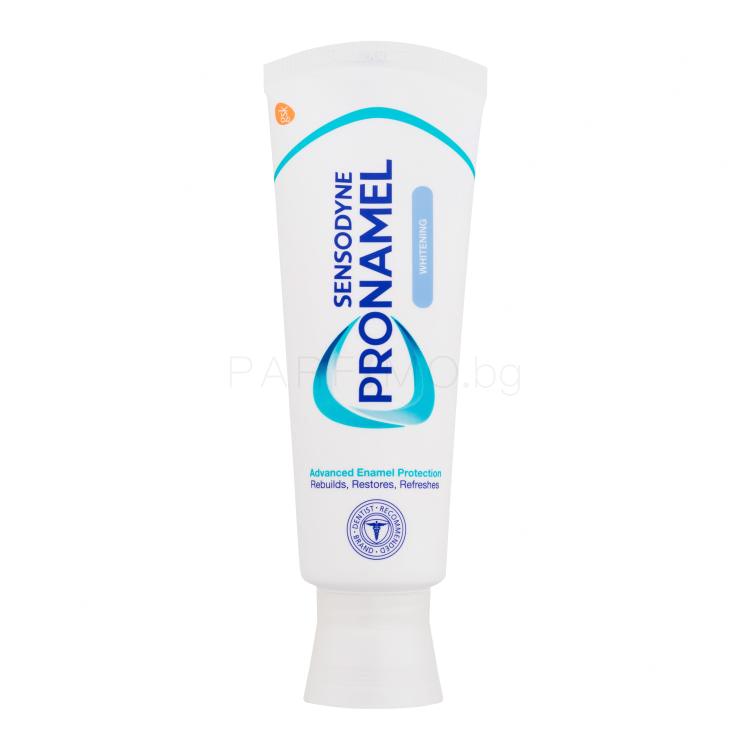 Възстановете естествената белота на вашите чувствителни зъби. С паста за зъби Sensodyne Pronamel Whitening, която не позволява киселината в устата да развали зъбния емайл. Това поддържа вашите зъби здрави и силни. Вече можете да се наслаждавате на различни храна и напитки без болка. Премахва петната от зъбите и по този начин възвръща естествената им белота.