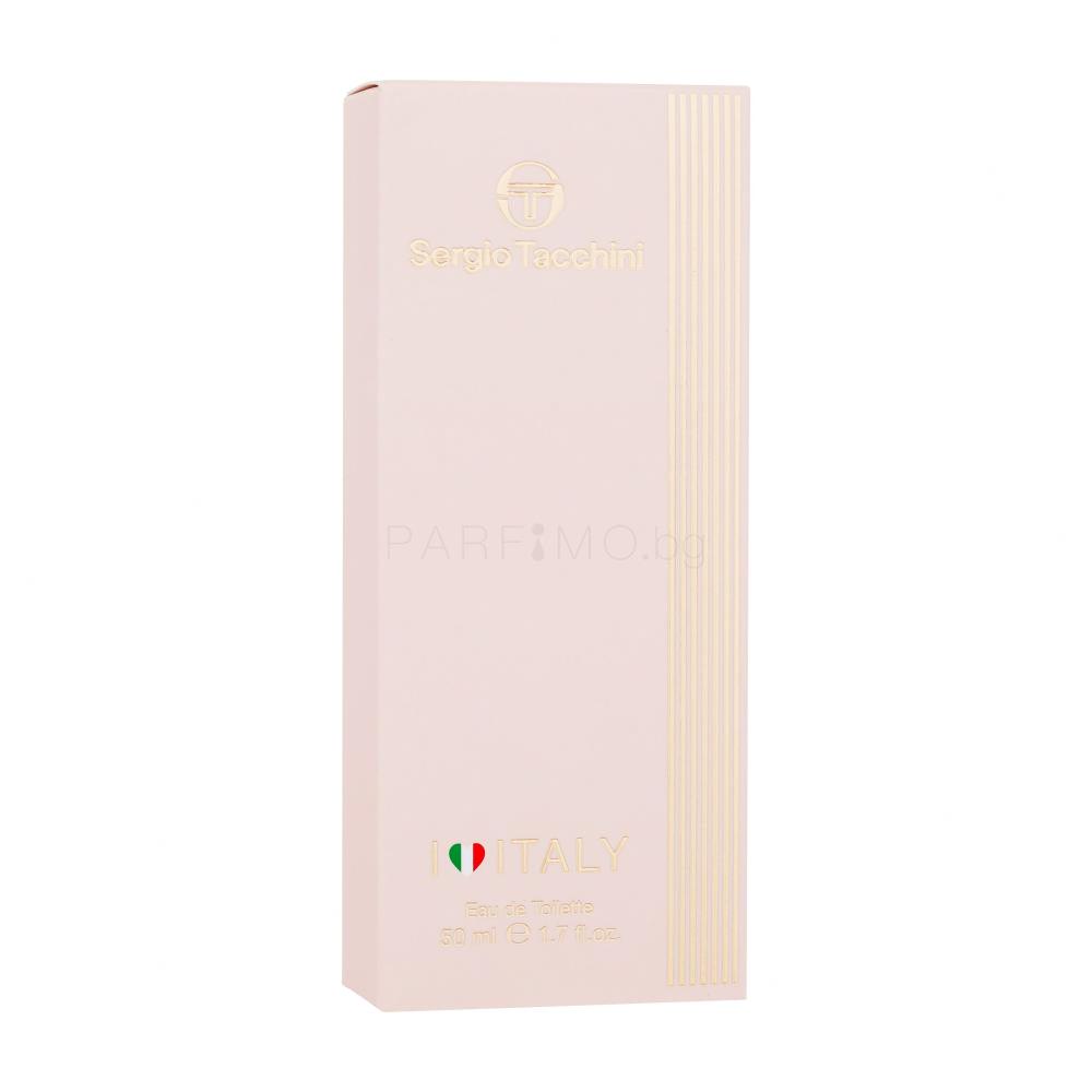 Дамска тоалетна вода Sergio Tacchini I Love Italy е пусната на пазара заедно с мъжкия си аналог със същото име. Мъжката тоалетна вода Sergio Tacchini I Love Italy се отваря с освежаващо взаимодействие на бергамот, италианска мандарина, червен портокал и италиански лимон. Розмарин, петитгрейн и морска сол са нотки, които ще откриете в съцето. Базата се характеризира с трио от мускус, мъх и дървесни акорди.