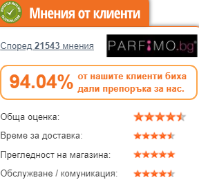 Присъединете се към хилядите доволни клиенти на онлайн магазин Parfimo.bg и пазарувайте лесно и изгодно. Клиентите оценяват цялостния процес и обслужване след регистриране на поръчка. Над 94% от клиентите биха препоръчали магазина на приятели, а над 70% от новите клиенти се завръщат повторно на сайта и пазаруват отново. Благодарим ви за доверието!