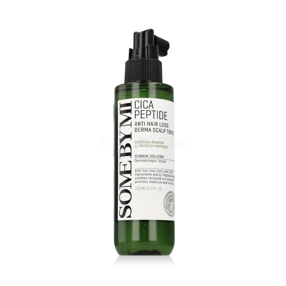 Тоникът за скалп Some By Mi Cica Peptide Anti Hair Loss Derma Scalp Tonic е интензивна терапия срещу косопад, създадена за укрепване на корените и възстановяване на здравето на скалпа. Формулата му съчетава силата на 11 вида пептиди, екстракт от центела азиатика (Cica) и кофеин, които стимулират растежа на нова коса и предотвратяват изтъняването. Лекият спрей се абсорбира бързо без омазняване и охлажда приятно скалпа, осигурявайки усещане за свежест. При редовна употреба косата става по-гъста, по-силна и по-устойчива на накъсване, а скалпът – балансиран и здрав.