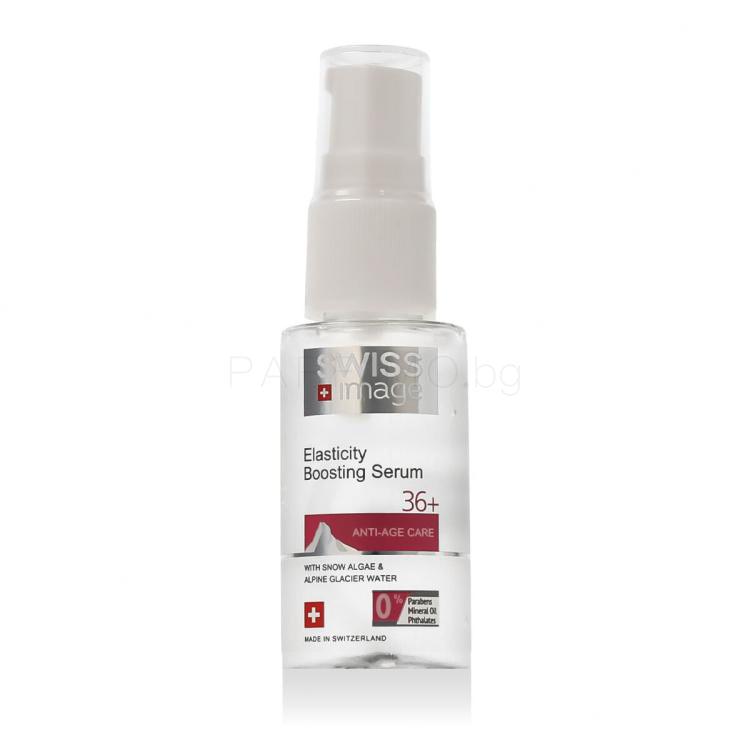SWISS Image Anti-Age Care Elasticity Boosting Serum е интензивен серум за кожа 36+, разработен да укрепи еластичността, да изглади фините линии и да осигури дълбока хидратация. Съдържа високоефективни пептиди и натурални масла, които заедно подобряват тонуса и свежестта на кожата. Леката и бързо абсорбираща се текстура гарантира комфортно нанасяне и незабавен ефект.