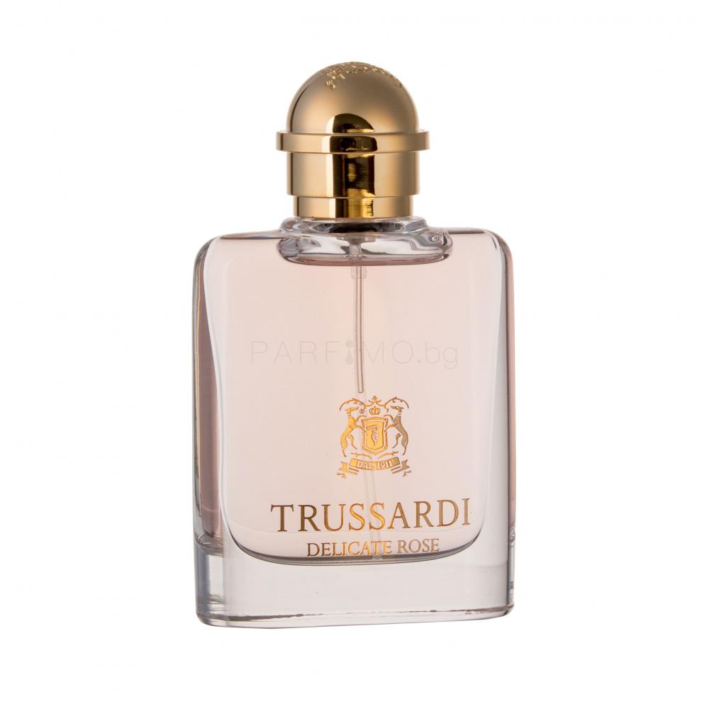 Розата. Изключително цвете, наричано кралицата на цветята. Цвете, което е уникално с това, че е крехко и също така невероятно опасно благодарение на острите си бодли. Подобно на жена, която крие и двете страни под мистериозен, очарователен воал. Ароматът на тоалетната вода Delicate Rose на Trussardi, чиято основна съставка е розата, се отличава с доминиращи романтични акорди. Акорди, които ще подчертаят вашата женствена и изключително съблазнителна страна. Ароматът е лансиран през 2013 г.