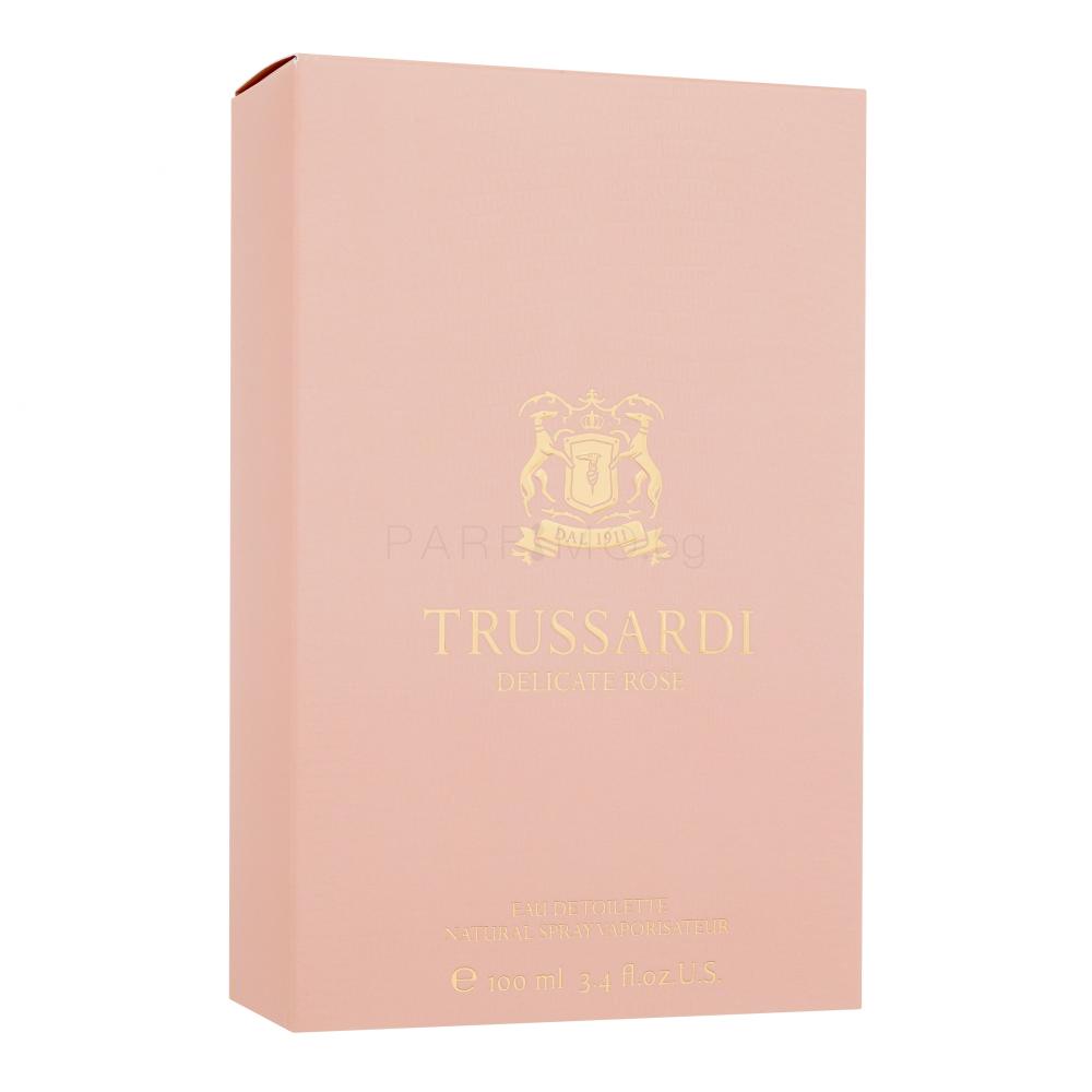Розата. Изключително цвете, наричано кралицата на цветята. Цвете, което е уникално с това, че е крехко и също така невероятно опасно благодарение на острите си бодли. Подобно на жена, която крие и двете страни под мистериозен, очарователен воал. Ароматът на тоалетната вода Delicate Rose на Trussardi, чиято основна съставка е розата, се отличава с доминиращи романтични акорди. Акорди, които ще подчертаят вашата женствена и изключително съблазнителна страна. Ароматът е лансиран през 2013 г.