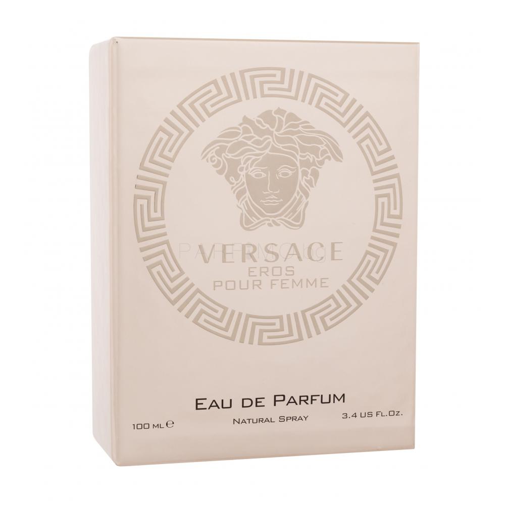 Дамски парфюм Versace Eros Pour Femme е вдъхновен от любовта, женската красота и неустоимото желание за победа. Оригиналният състав е проектиран от Alberto Morillas, Olivier Cresp и Nathalie Lorson, който отразява вътрешната красота и съвършенството. Фееричният състав от пресни плодове, постепенно се сливат с деликатните акорди на цветя. Първият полъх е плодово- цветна хармония, която се допълва от съблазнителни дървесни акорди, мускус и ambroxane. Неустомо сексапилният дамски парфюм Eros Pour Femme ще ви очарова с луксозния си и вълнуващ характер, лансиран на пазара през 2014 година.