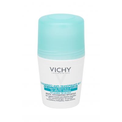 Антиперспирант рол он Vichy Antiperspirant No White Marks & Yellow Stains 48h предпазва кожата от прекомерно изпотяване, без да оставя бели и жълти петна по дрехите.