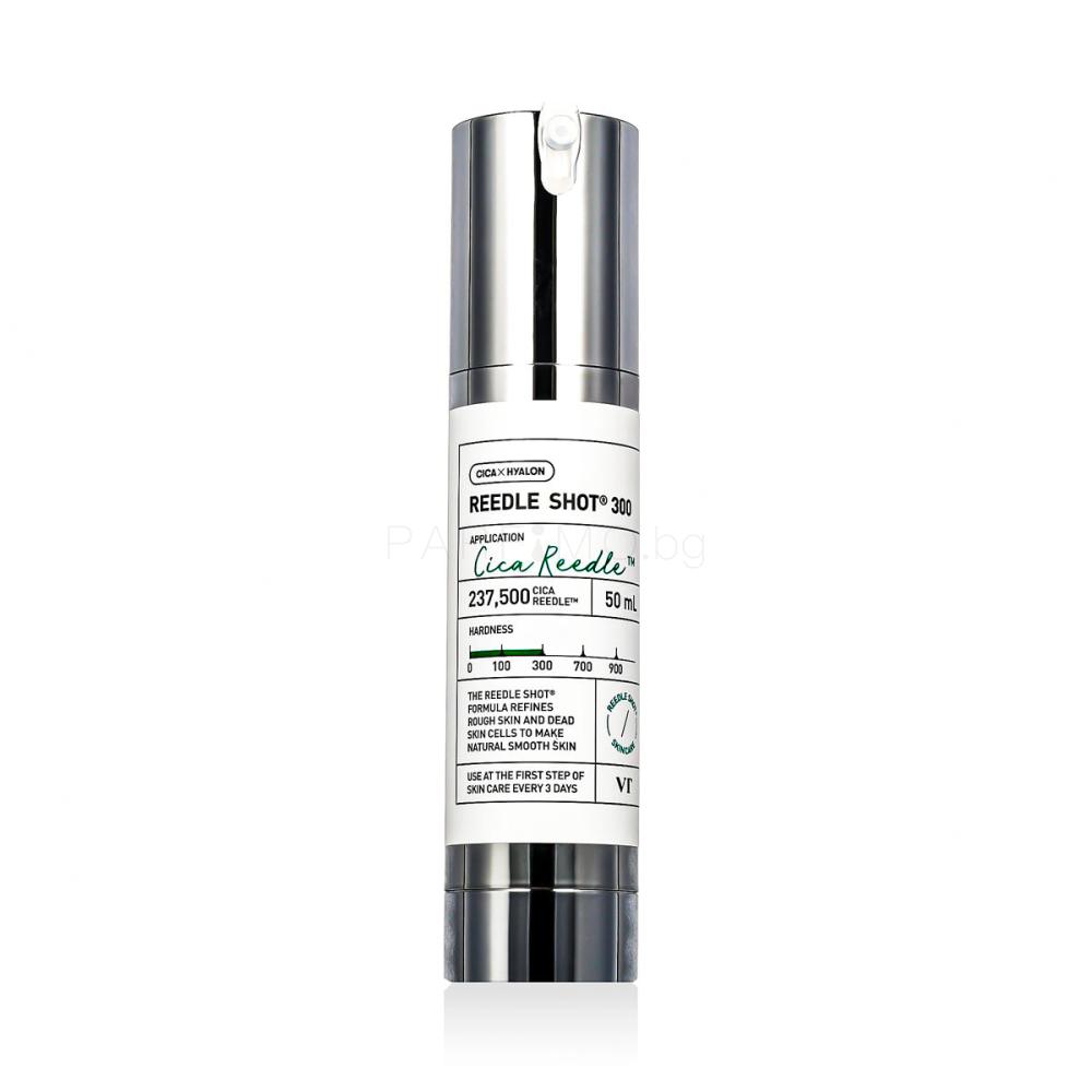 Бустерът за лице VT Cosmetics Reedle Shot 300 е ефективна грижа за по-здрава, гладка и сияйна кожа. Благодарение на иновативната технология Cica Reedle™, продуктът стимулира естественото обновяване на кожата, успокоява я и осигурява дълбоко подхранване. В състава му са включени ниацинамид за изсветляване и изравняване на тена, аденозин за намаляване на фините бръчки и прополисов екстракт с противовъзпалителни свойства.