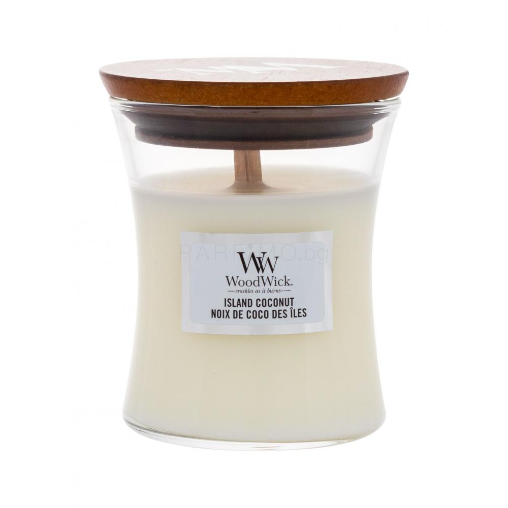 Копнеете да избягате на екзотичен остров? Бялата ароматна свещ WoodWick Island Coconut предлага възможност да се насладите на тази атмосфера и от уюта на дома. Забравете за проблемите, докато усещате аромата и трептящия пламък на прекрасната свещ WoodWick Island Coconut!