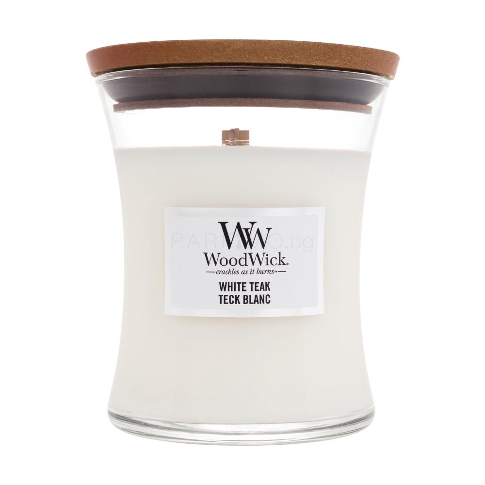 Обичате ли свежия аромат на море, лавандула и красотата на горите? Унисекс веган ароматна свещ WoodWick White Teak съчетава всичко, което създава атмосфера на средиземноморска лятна ваканция във вашия хол, спалня или офис. Не се колебайте: в допълнение към ободряващия аромат и стилен дизайн ви очакват пукащ фитил и релаксиращо трептене на пламъка... С ароматна свещ WoodWick White Teak гарантирано ще забравите за тревогите си.