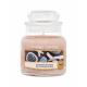 Веднага можете да отидете на лятна ваканция с ароматна свещ Yankee Candle Seaside Woods. Изработена е от равномерно ароматизиран парафин с хранително качество и фитил от естествени влакна. За да сте сигурни, скъсете фитила на свещ Seaside Woods до 3 mm преди запалване и не я оставяйте да гори без надзор.