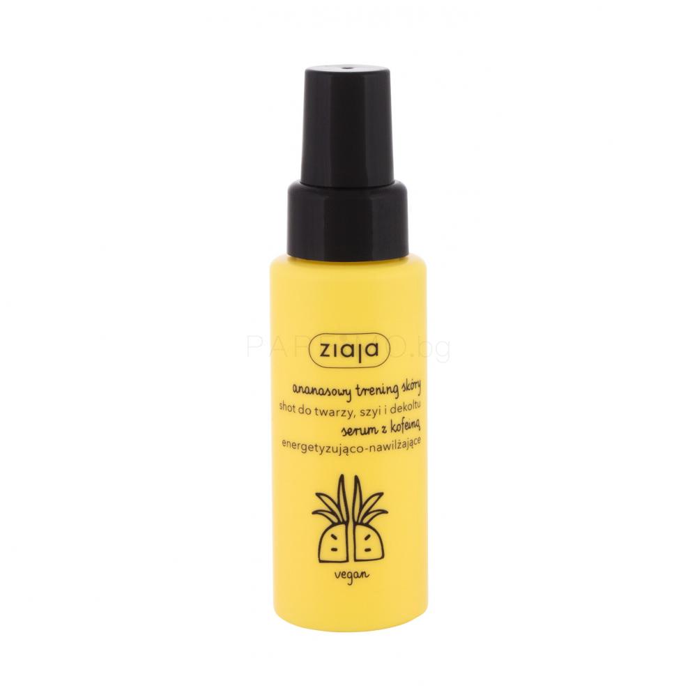 Концентрираният енергизиращ серум за лице и шия Ziaja Pineapple Caffeine Serum незабавно ще даде на кожата ви сила, благодарение на богатия си състав. Кожата ви ще стане хидратирана, ревитализирана и с неустоим аромат.
